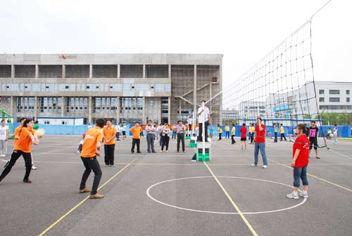 在比赛过程中,学校的校级领导给予了极大关注。学校党委书记、校长徐兆东同志亲率全体领导班子成员,分别、多次到赛场观看比赛,给各代表队加油助威,鼓舞士气,使队员们增强了信心和力量;党委副书记王智勇同志更是亲自上场参加比赛,给各参赛队以极大的鼓舞。赛场上,紧张、激烈的气氛无时无刻不围绕在每一个角落,队员们是热血沸腾、挥汗如雨、永不放弃,他们发球、接球、传球、扣球,以自己的最佳状态互相配合。图书馆代表队和联合四代表队,不仅独立组队,队员们在场上的表现也非常积极主动,他们不畏强手,认真对待每一场比赛,表现出了勇于拼搏的精神风貌;各学院代表队更是积极响应,师范学院、外语学院、人文学院、理工学院院长、书记率领全体领导班子或参战或指挥或助阵,体现了团结协作,默契配合,积极向上的精神风貌;其他各代表队也都认真组织,充分调动了队员的积极性,以团结、拼搏、不断进取的精神打好每一场球。场下的拉拉队员也非常的积极,他们大声地为队员加油;休息时,为队员送水,虽没有亲身参加比赛,但他们也是比赛的一分子。