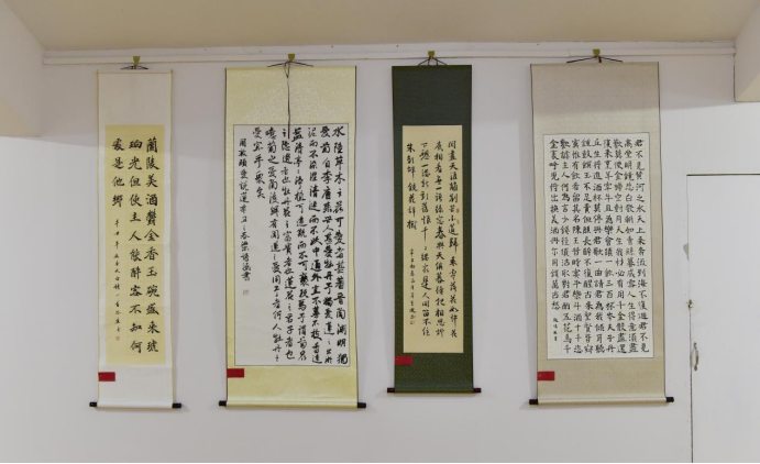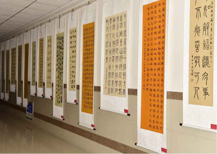 本次展览在书法专业教师的细心指导下,共展出2019、2020级学生课堂教学和2018级毕业生精心创作的书法作品110余幅,篆、隶、楷、行、草五大书体俱全,这些作品或弘扬主旋律,书随时代;或根植传统,书艺精良;还有些作品尚显稚嫩,或灵性尚可,功力不足,或文辞优美,技法欠佳,还需学习和提升。