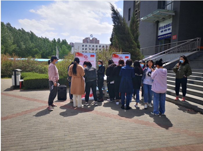 本次活动采取线上注册、答题的方式,并按照竞赛成绩进行评奖,奖项分设一、二三等奖和优秀奖。为了提升在校师生的参与度,图书馆利用午休时间在学校食堂门前开展了现场宣传活动。活动当天,馆员们为师生讲解活动内容,帮助他们完成扫码注册并参与活动。此外,图书馆还通过在各学院摆放活动展板、宿舍楼张贴海报以及微信公众号推送等多种形式进行宣传吸引读者参赛。